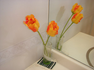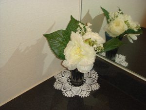 川平屋のトイレは・・・というと、「松谷さん」が責任を持ってトイレを掃除してくれているので、いつもきれいです。本当にありがたいとおもいます。トイレの花も「生花だとすぐダメになってしまいもったいないから」と言って、お休みの日にわざわざ「限りなく本物に近い造花」を探して買ってきてくれました。